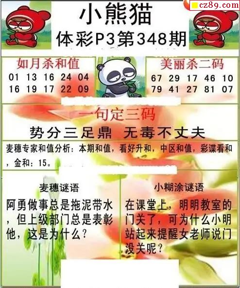 小熊猫2025348期体彩P3图谜