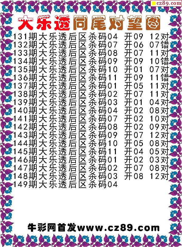 大乐透149期牛彩特邀专家前区后区杀号定胆图表