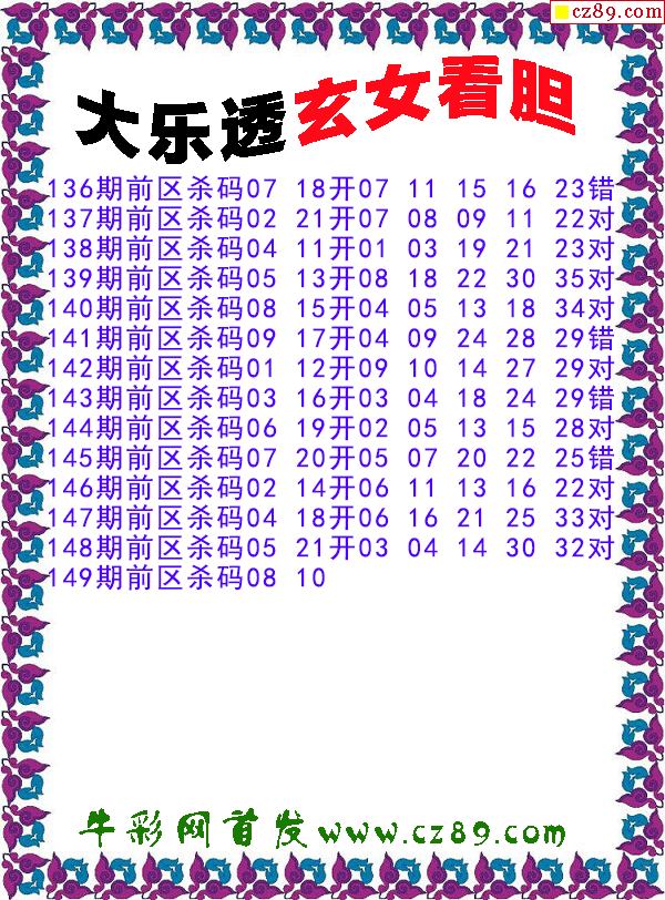 大乐透149期牛彩特邀专家前区后区杀号定胆图表