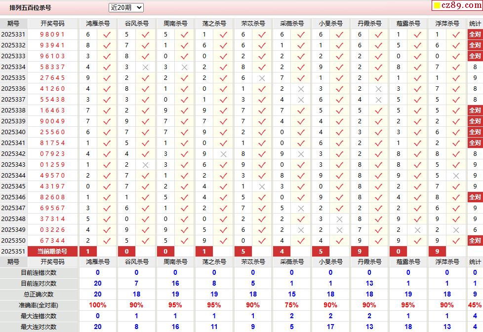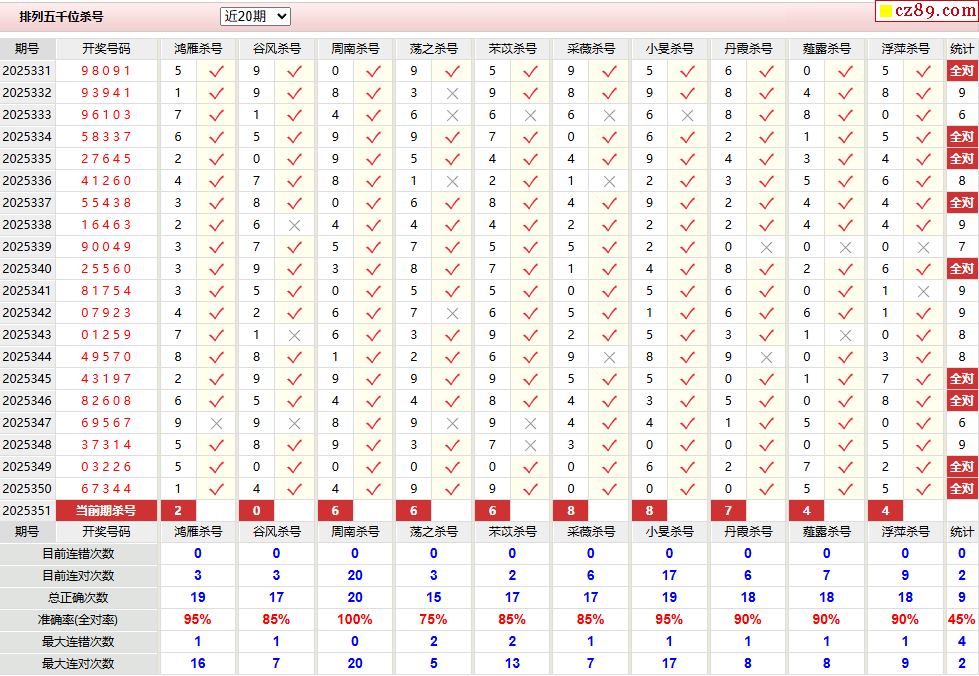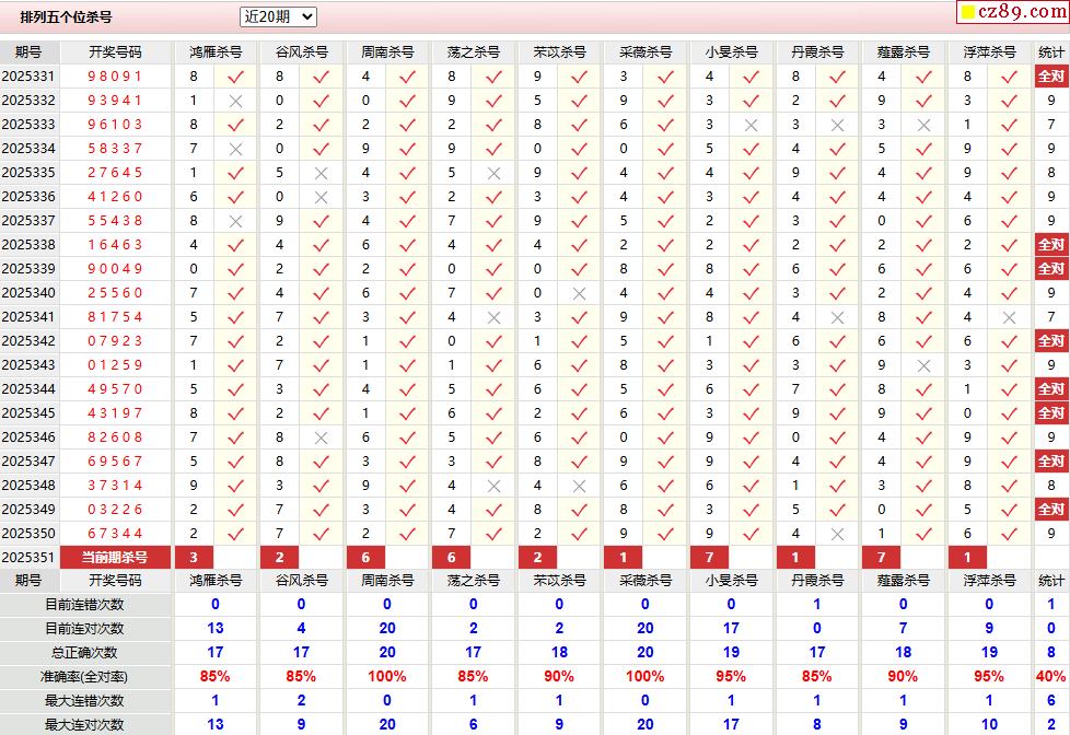 25年351期彩宝贝专家体彩P3杀号定码图表