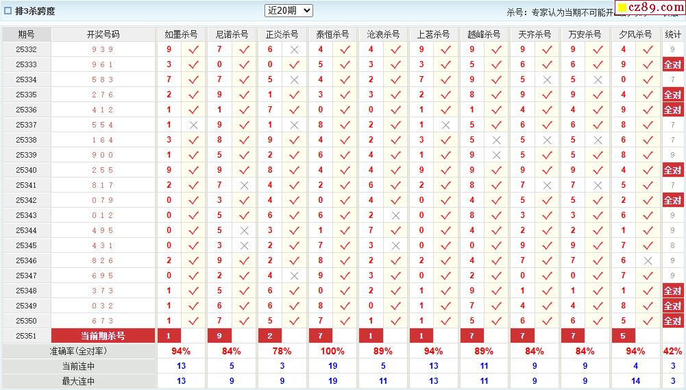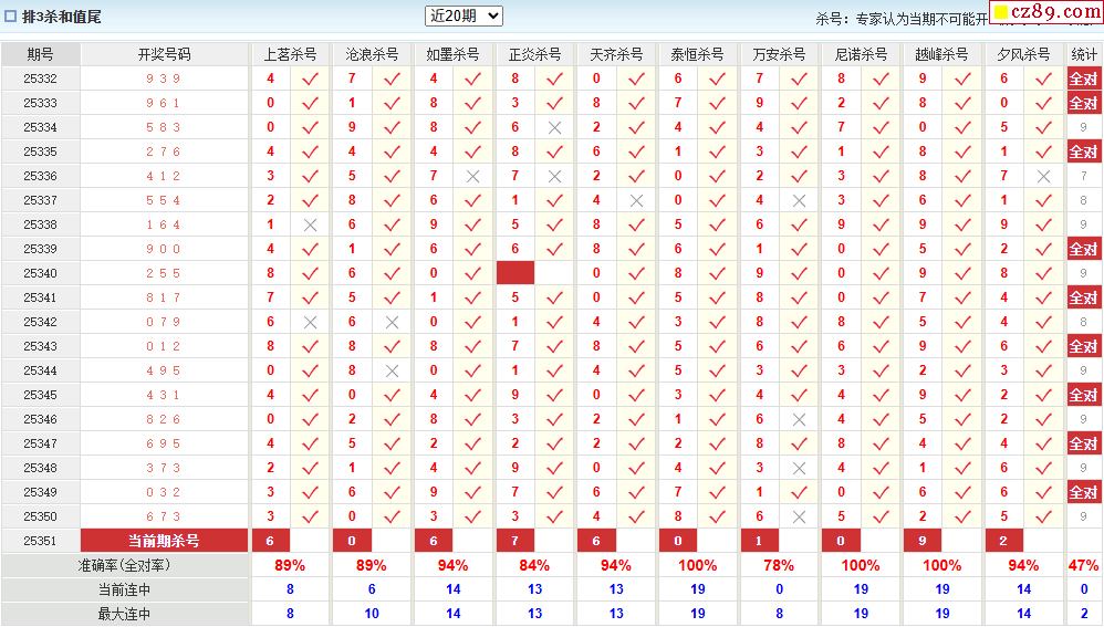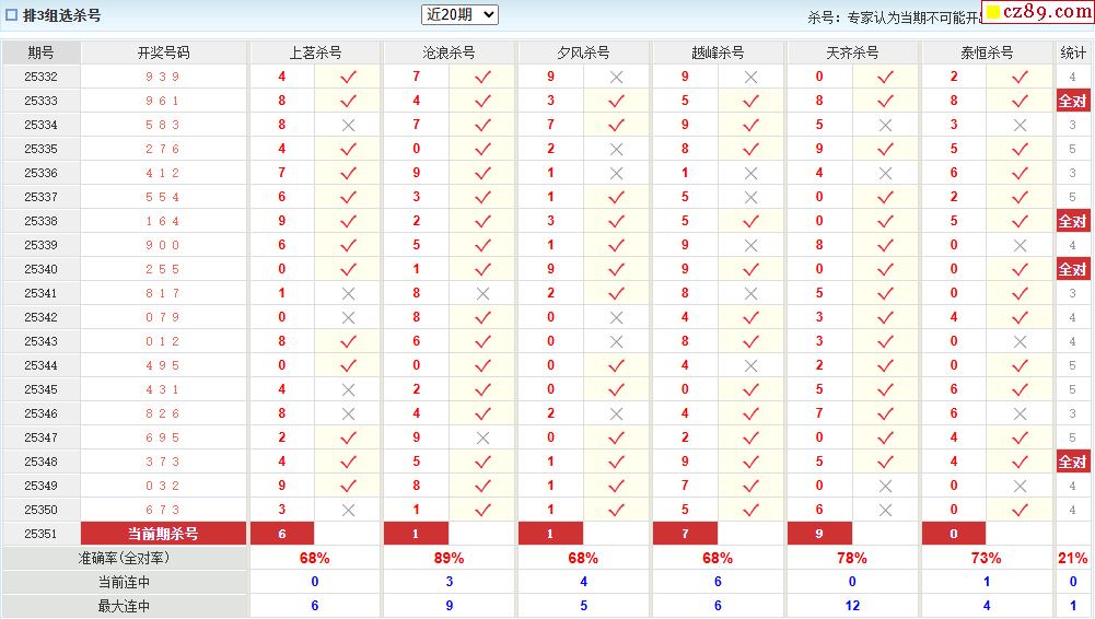 25年351期彩宝贝专家体彩P3杀号定码图表
