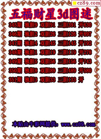 3D图谜: 3D胆码图 3D杀码图