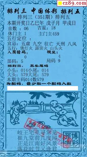 2025351期排列三 白鱼舟P3图谜二将斗胆图