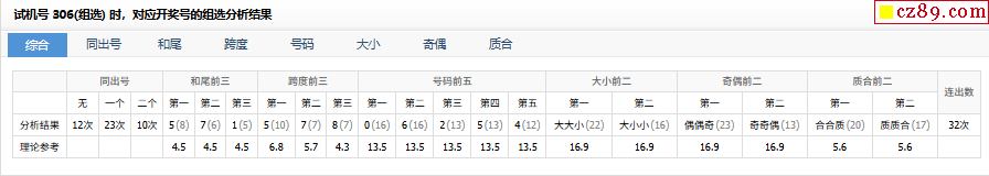 351期福彩3D试机号306对应开奖号的组选分析结果