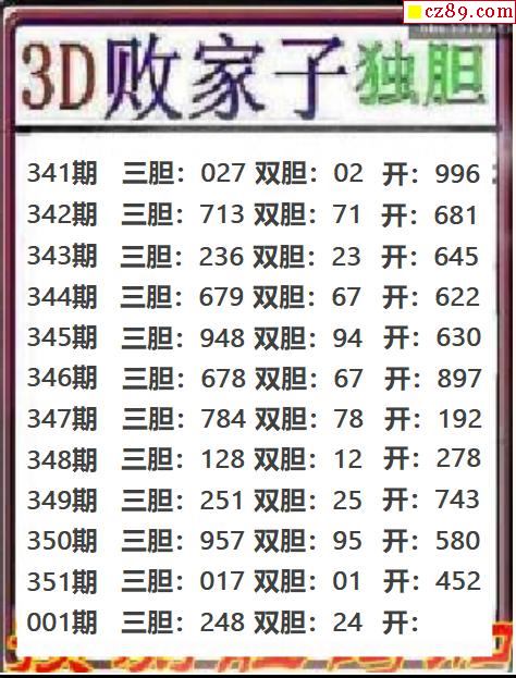 败家子独胆2026001期3d图谜