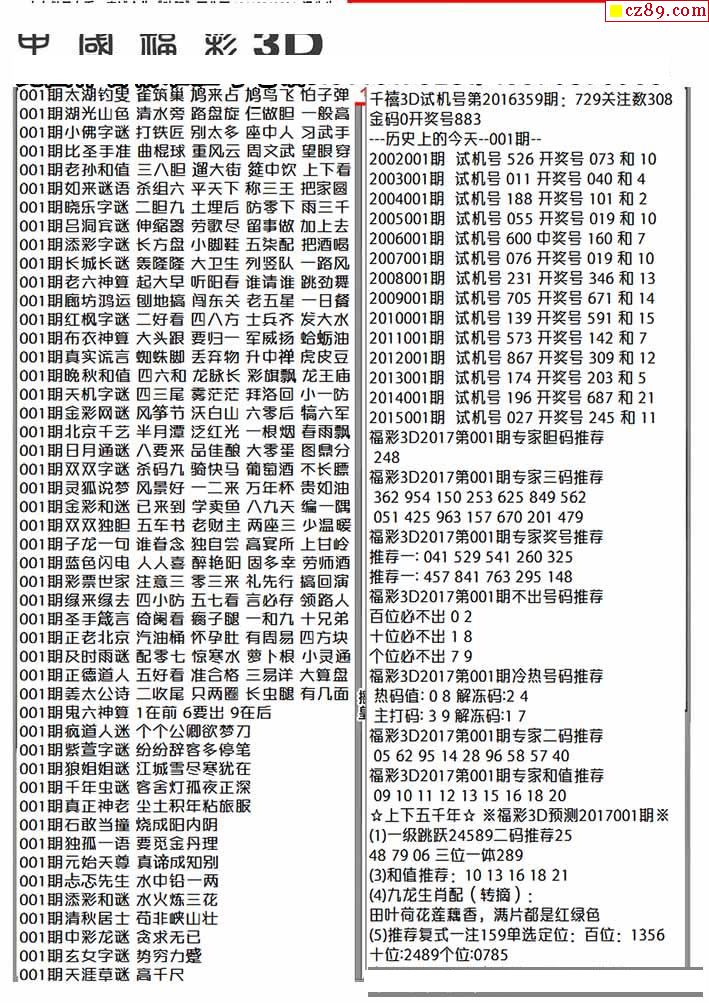 2026001期福彩3D图谜汇总