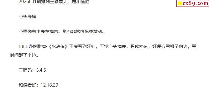 体彩P3字谜汇总2026年001期超级马克p3今日字迷总汇