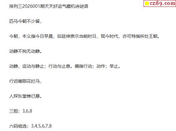 体彩P3字谜汇总2026年001期超级马克p3今日字迷总汇