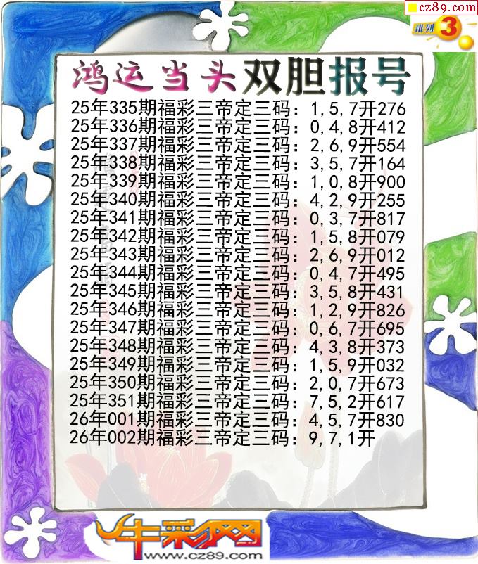 鸿运当头双胆报号002期体彩P3图谜
