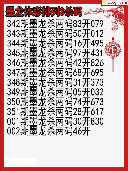 26年002期墨龙体彩排列3杀码图