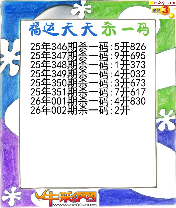 福运天天杀一码002期体彩P3图谜