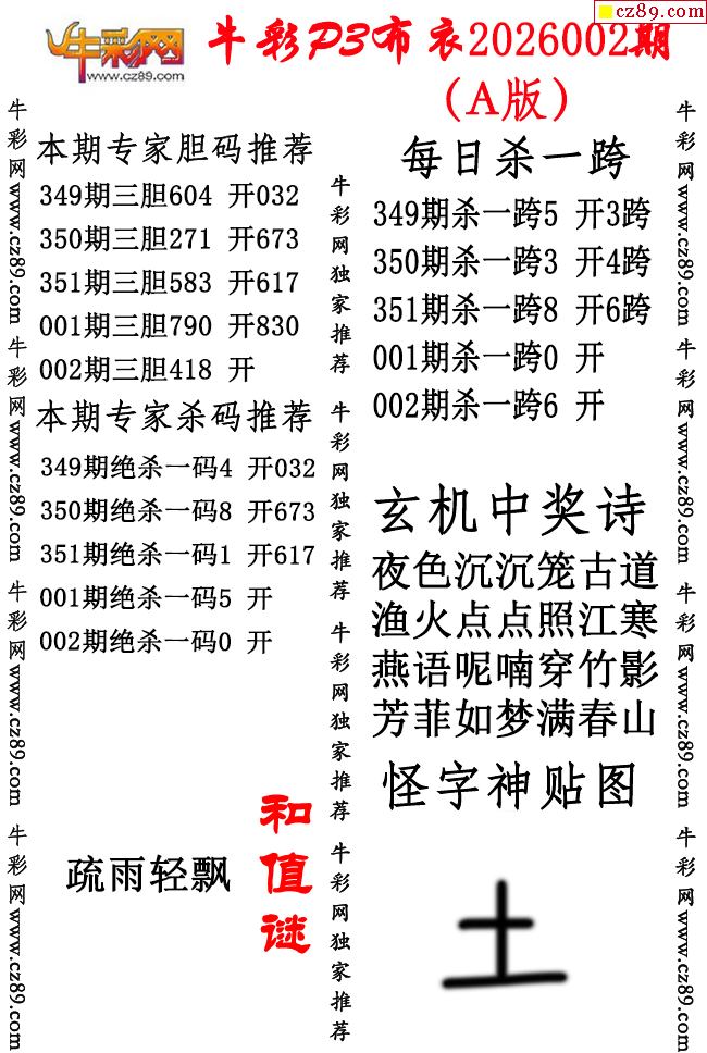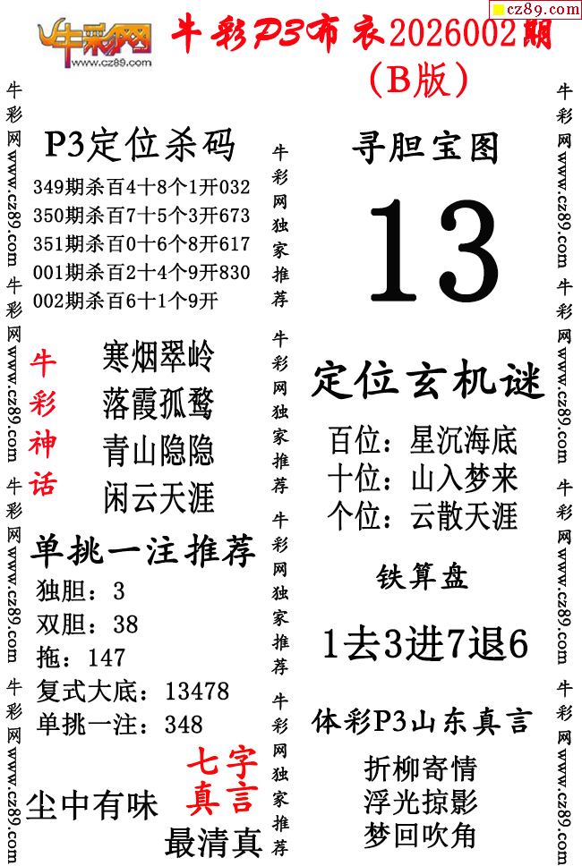 牛彩P3布衣26年002期AB版图谜(精华版)