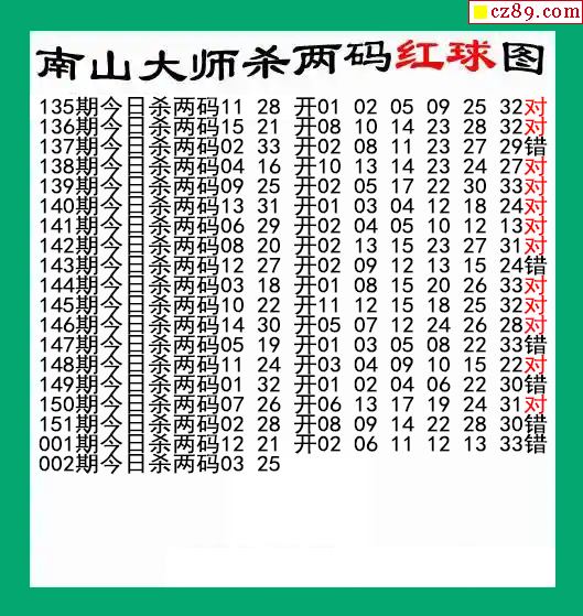 南山大师杀两红 002期双色球图谜