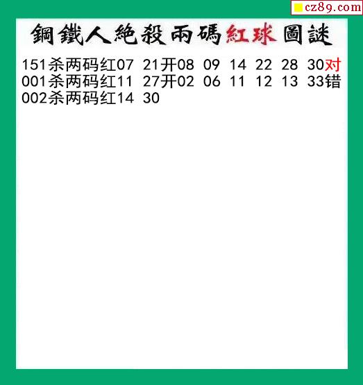 钢铁人杀两码红球 002期双色球图谜