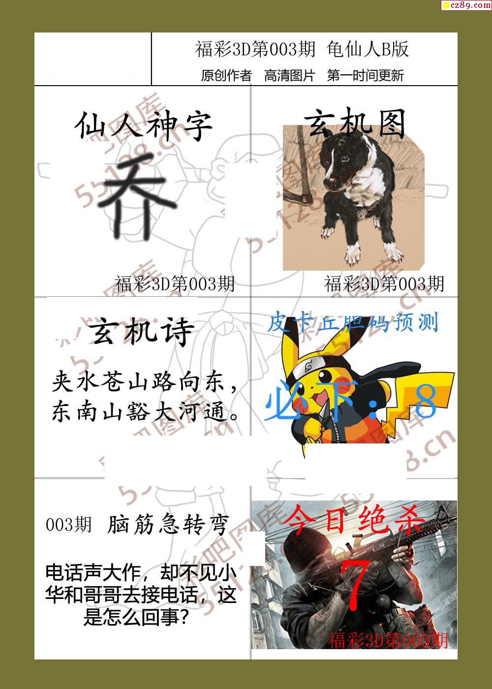 龟仙人26年003期福彩3d图谜