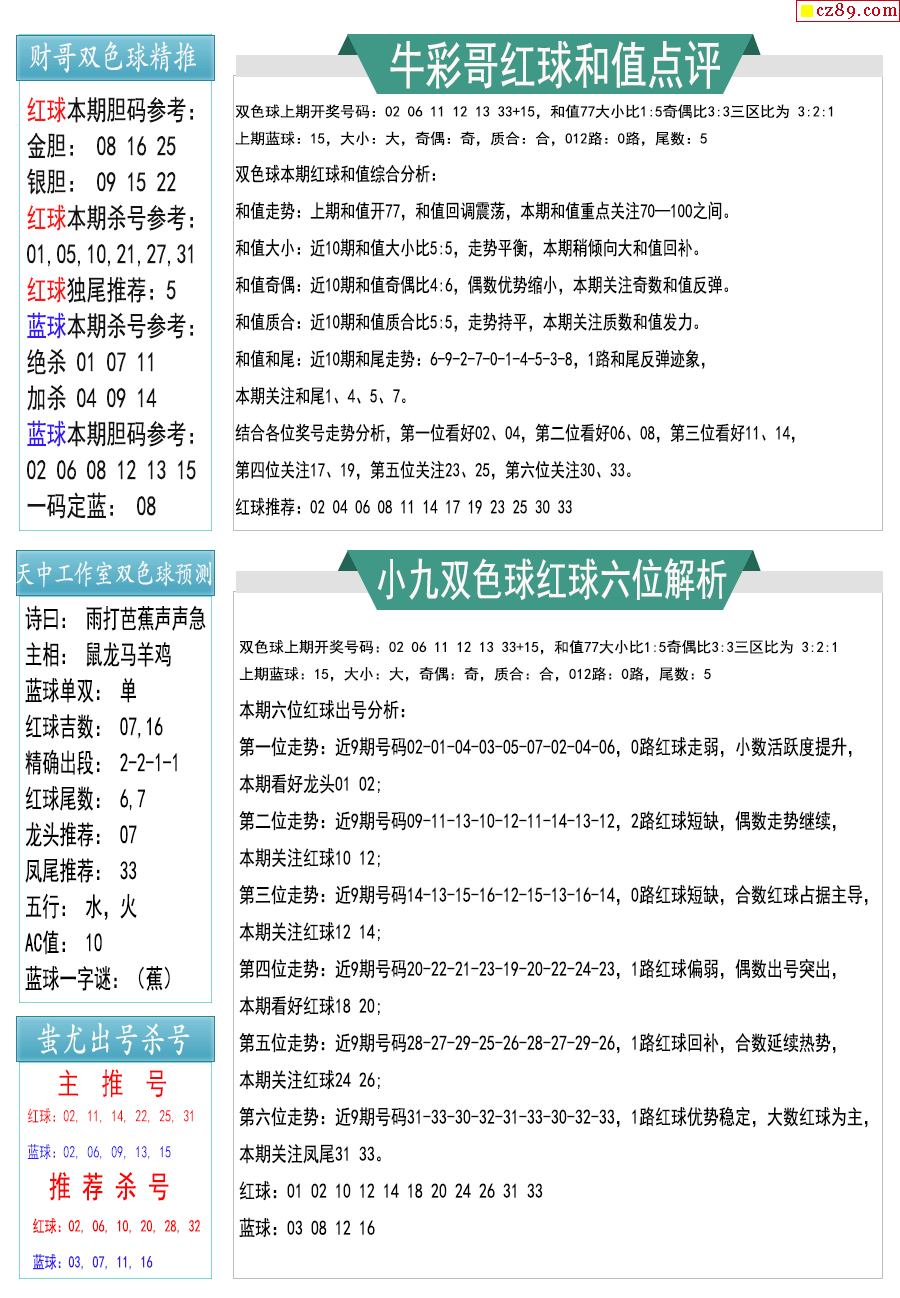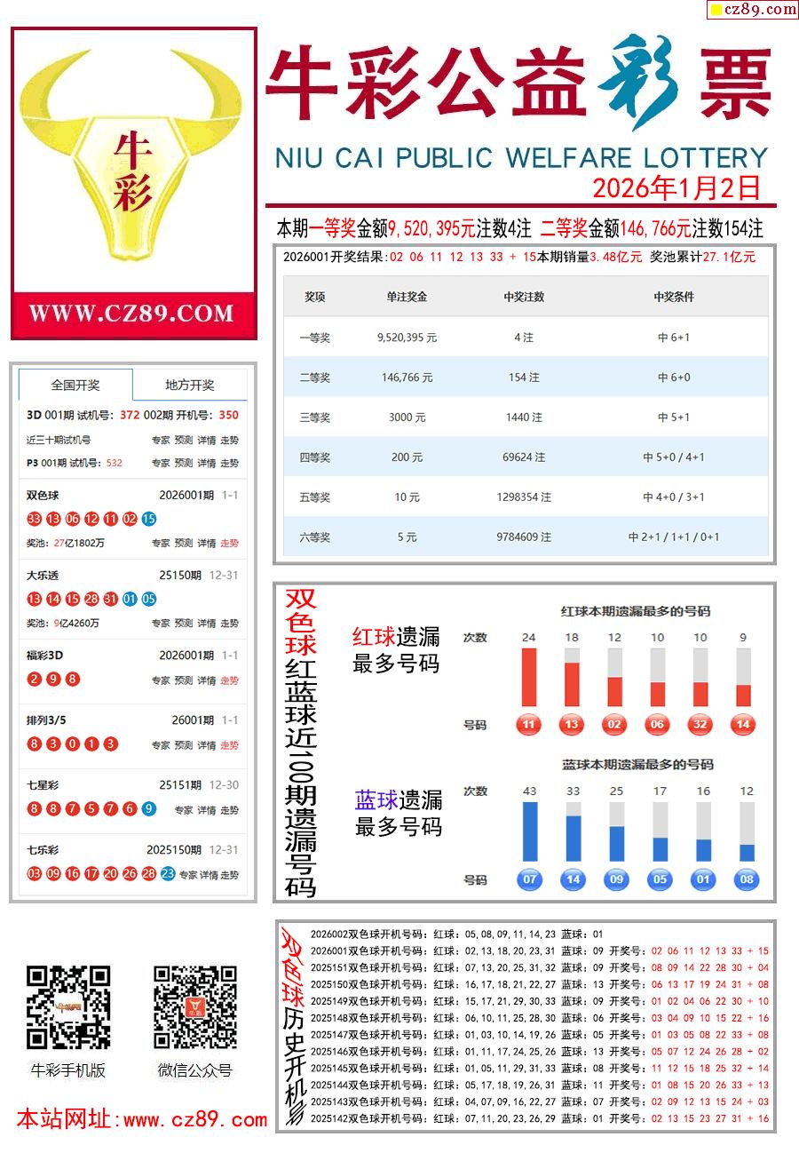 26年002期双色球彩票指南【牛彩版】