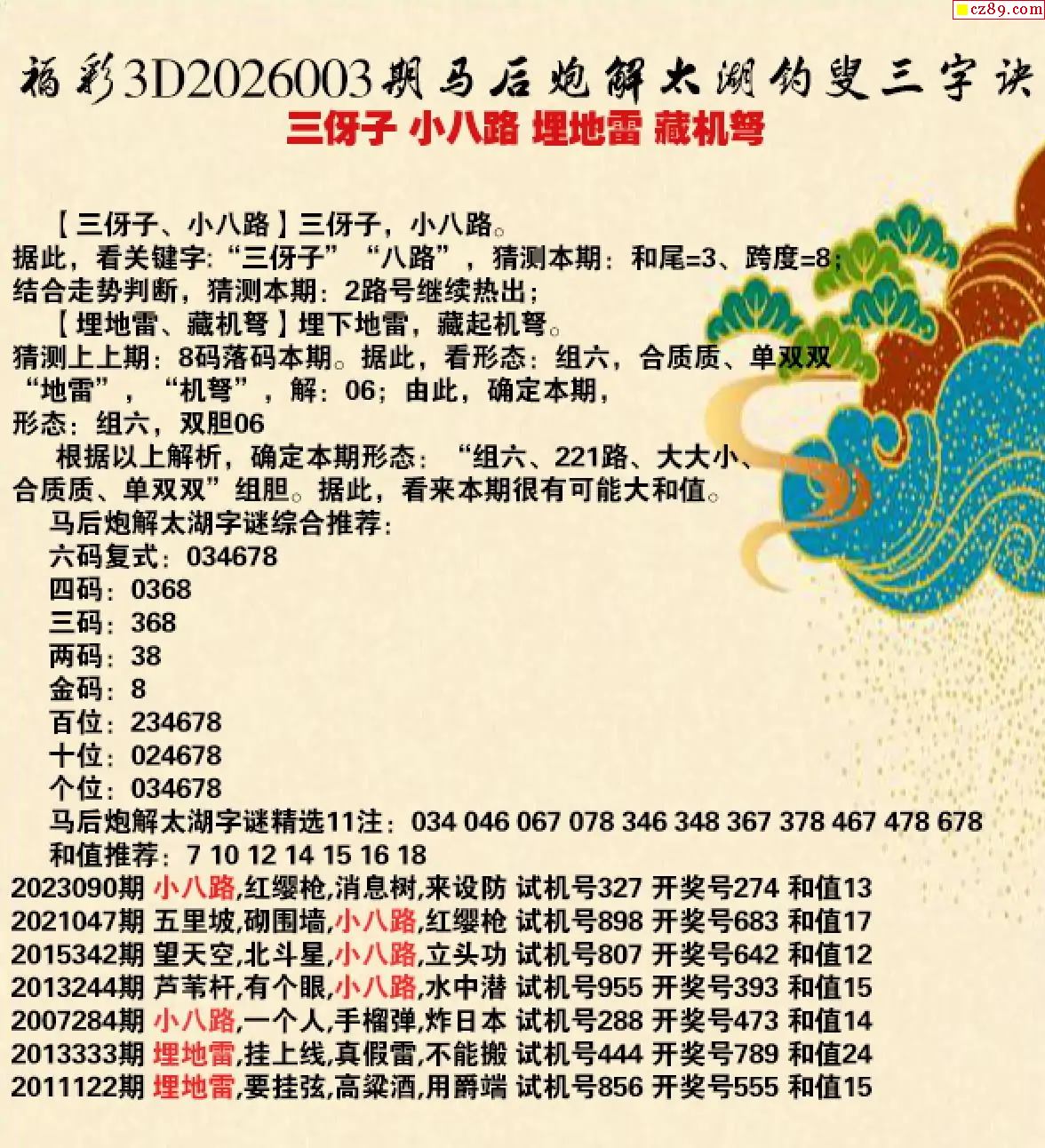 003期真实谎言解析太湖3D字玄机 埋地雷