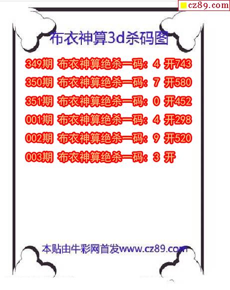 2026003期3D图谜汇总(九)