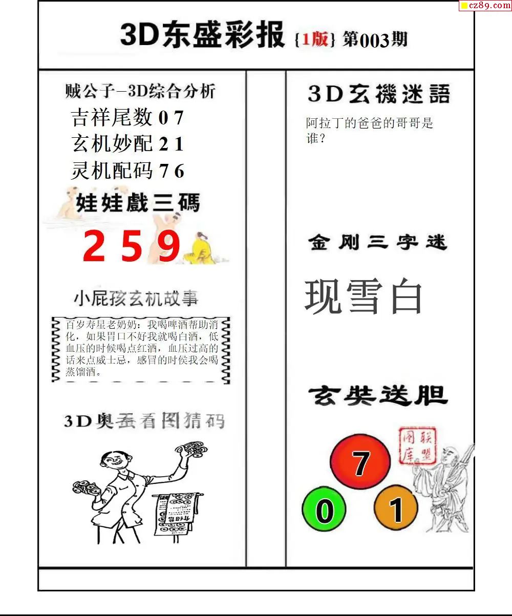 牛彩版3D字谜彩报图26年007期打印版
