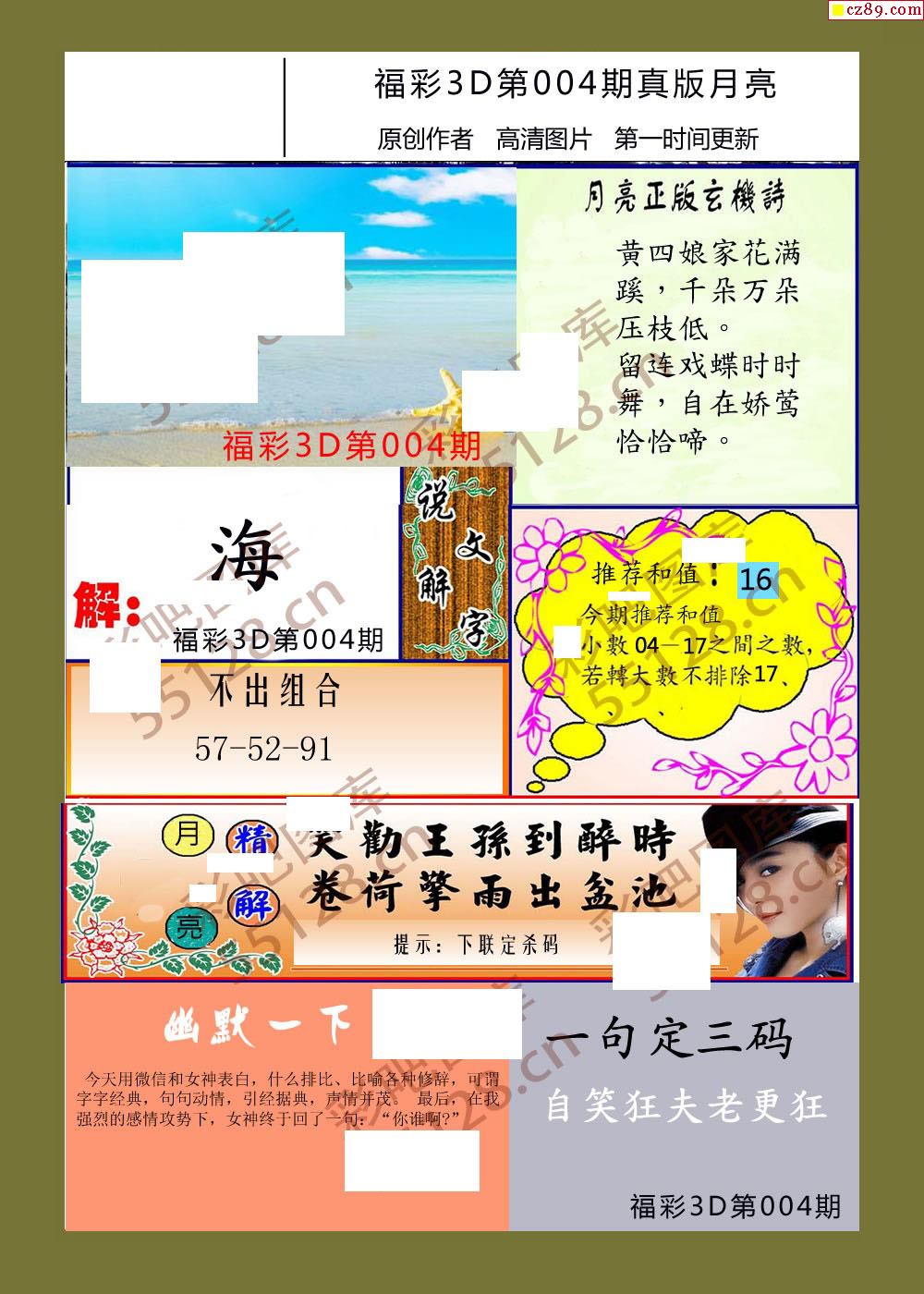 月亮26年004期福彩3d玄机图谜