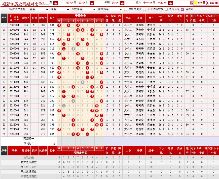千禧3D试机号2026004期399关注数751金码5试机号对应码568
