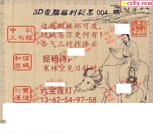 福彩3D2026004期 祁连牧哥百财纳福胆码图谜推荐
