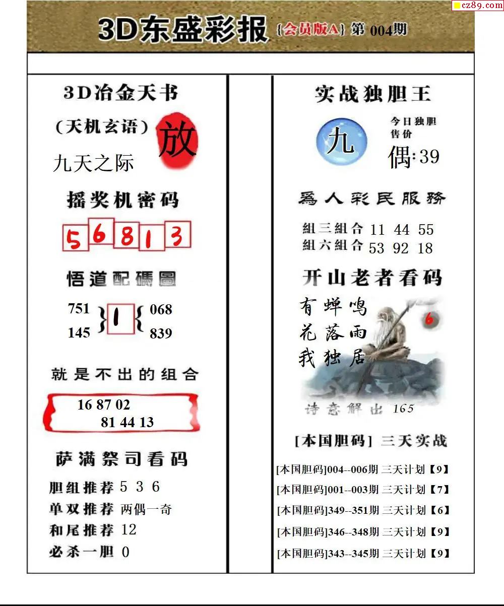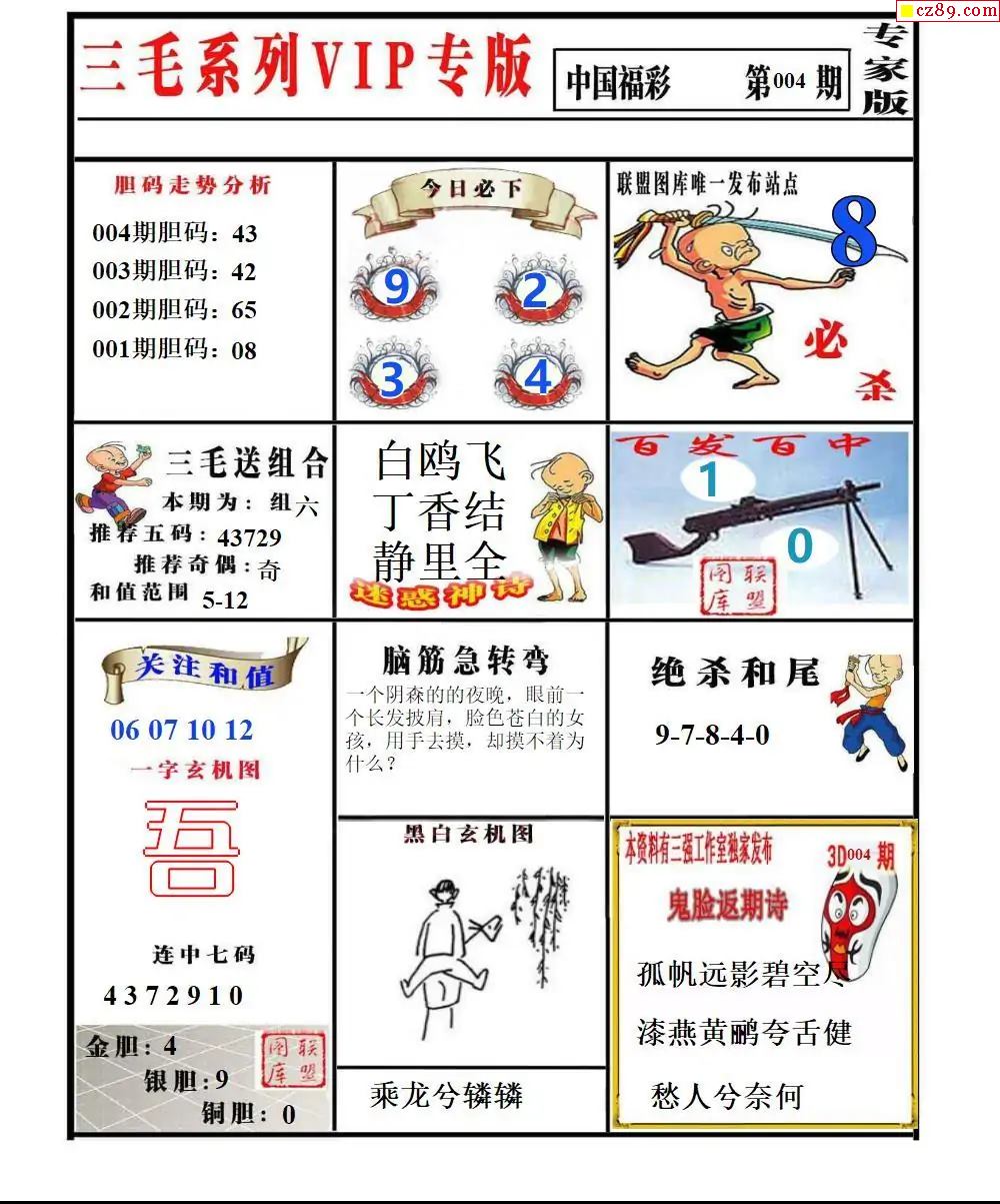 福彩3D2026004期东盛彩报+精品三毛会员版