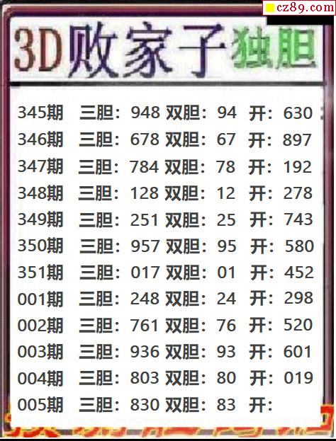 26年005期3d 超越梦想今晚胆码推测图