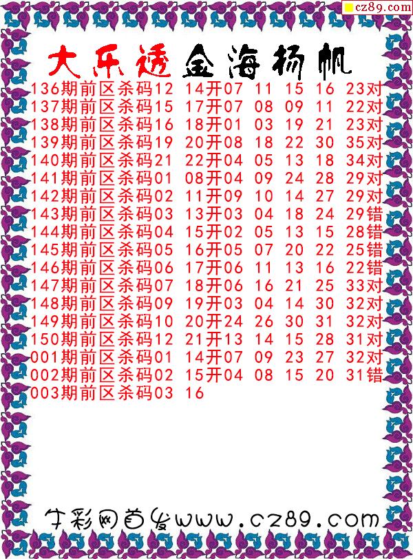 大乐透003期牛彩特邀专家前区后区杀号定胆图表