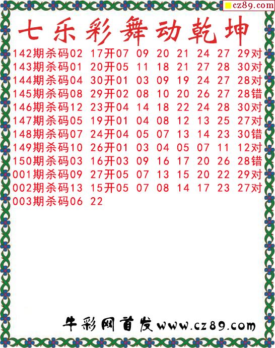 七乐彩003期 彩宝贝专家杀号码预测图表