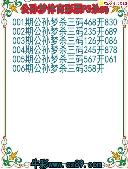 26年006期公孙梦体育彩票P3杀码图