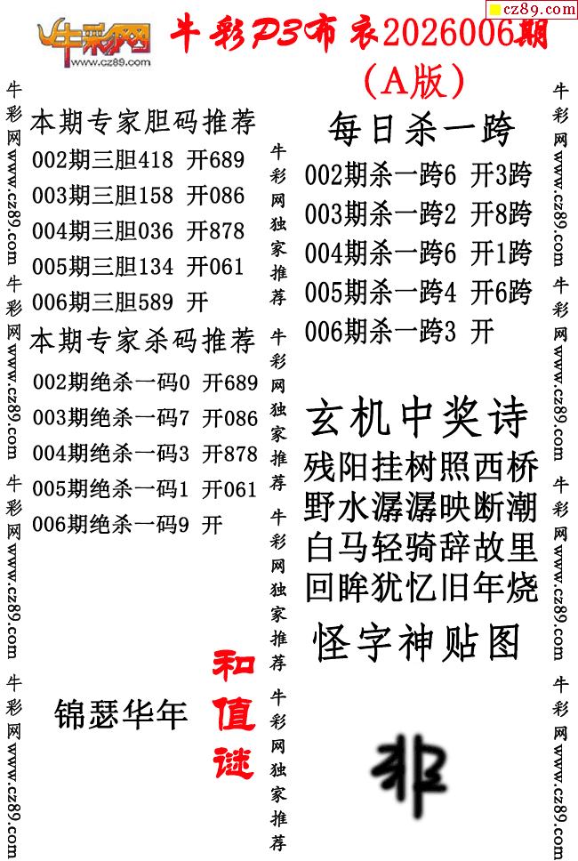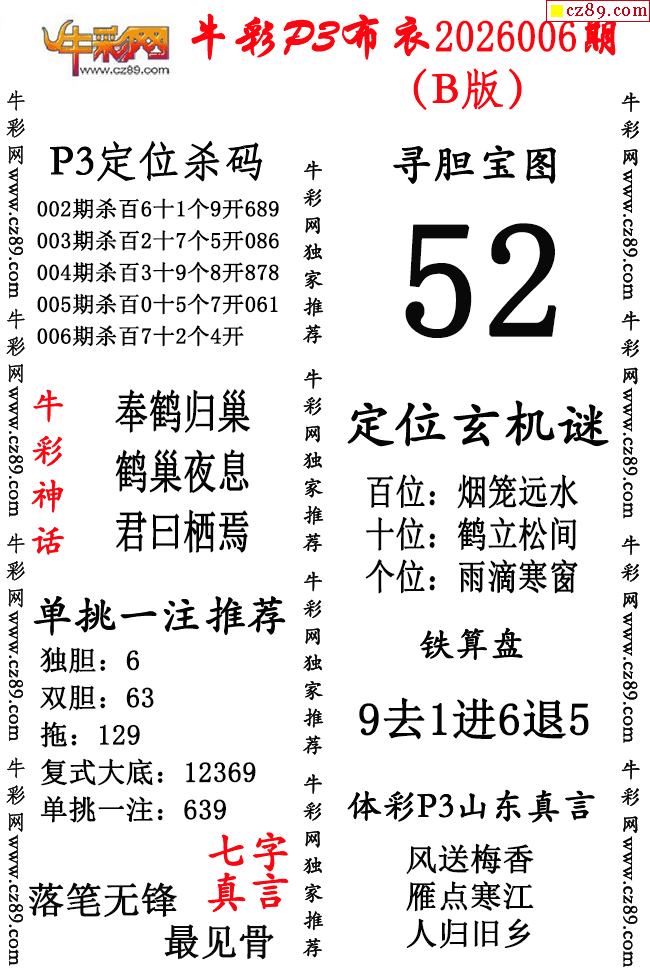 牛彩P3布衣26年006期AB版图谜(精华版)
