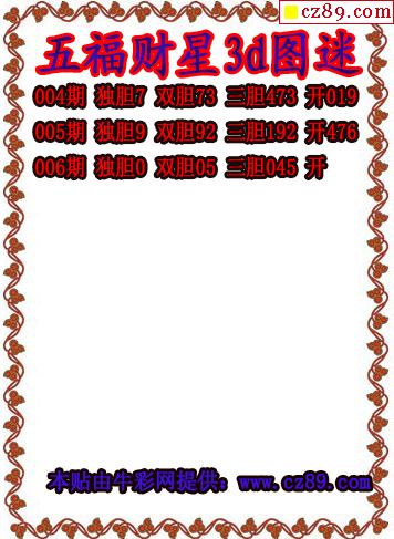五福财星三胆2026006期3d图谜(原创)