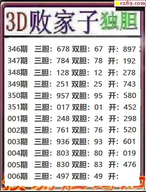 26年009期3d 招财进宝今日胆码推荐图参考
