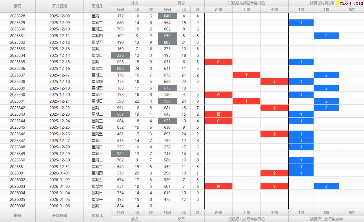 26年006期福彩3D试机号走势图表分析