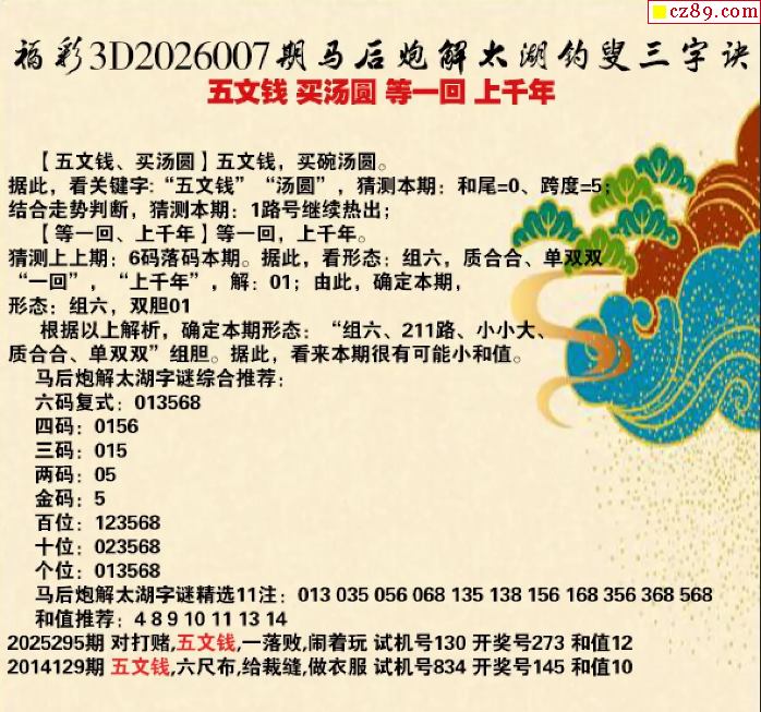 马后炮解26年008期3d太湖钓叟之 一辫子