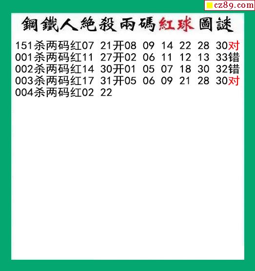 钢铁人杀两码红球004期双色球图谜