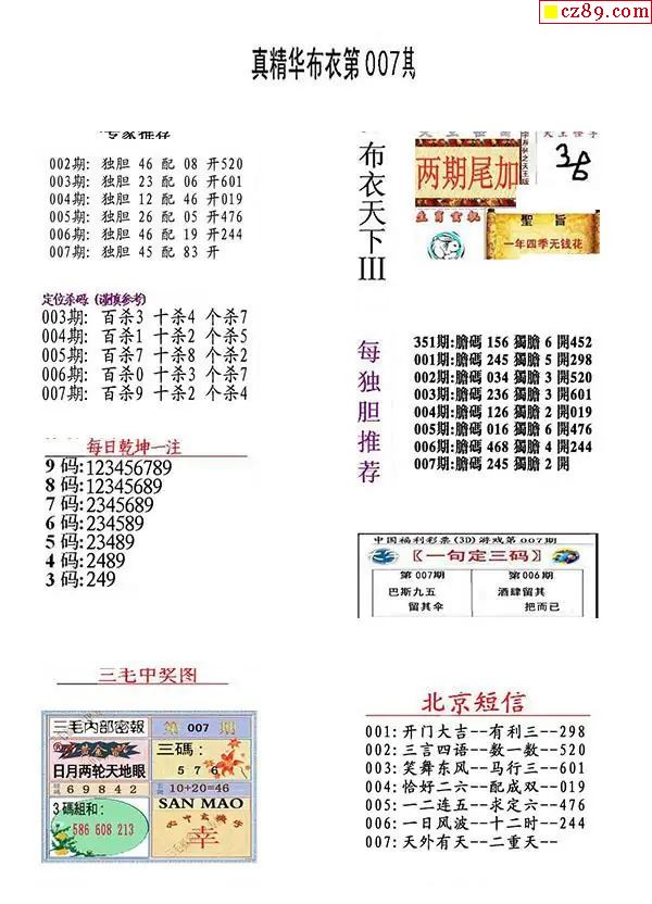 2026007期3D图谜汇总(七)