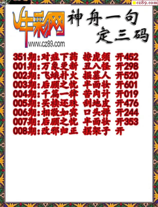 牛彩版3D字谜彩报图26年009期打印版