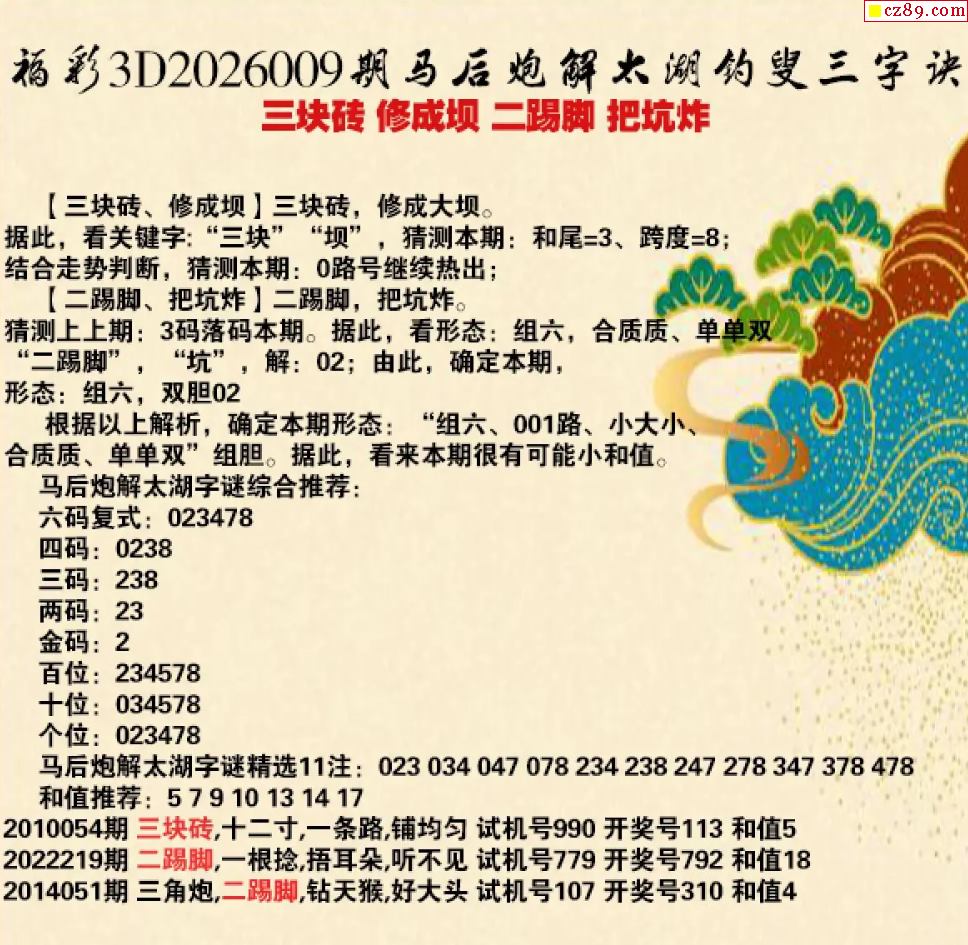 马后炮解26年009期3d太湖钓叟之 把坑炸