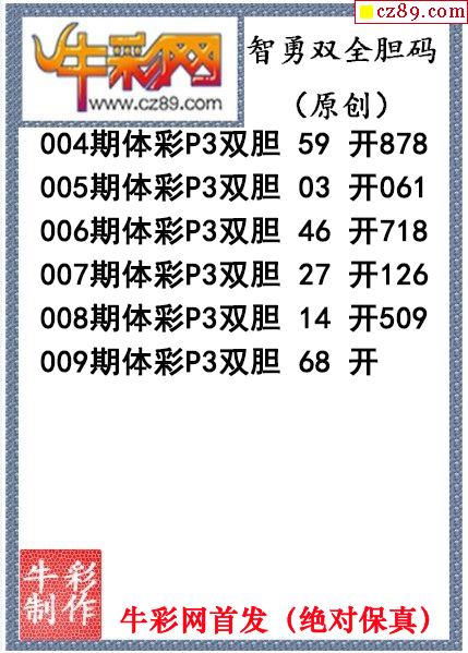 鸿运当头双胆报号009期体彩P3图谜