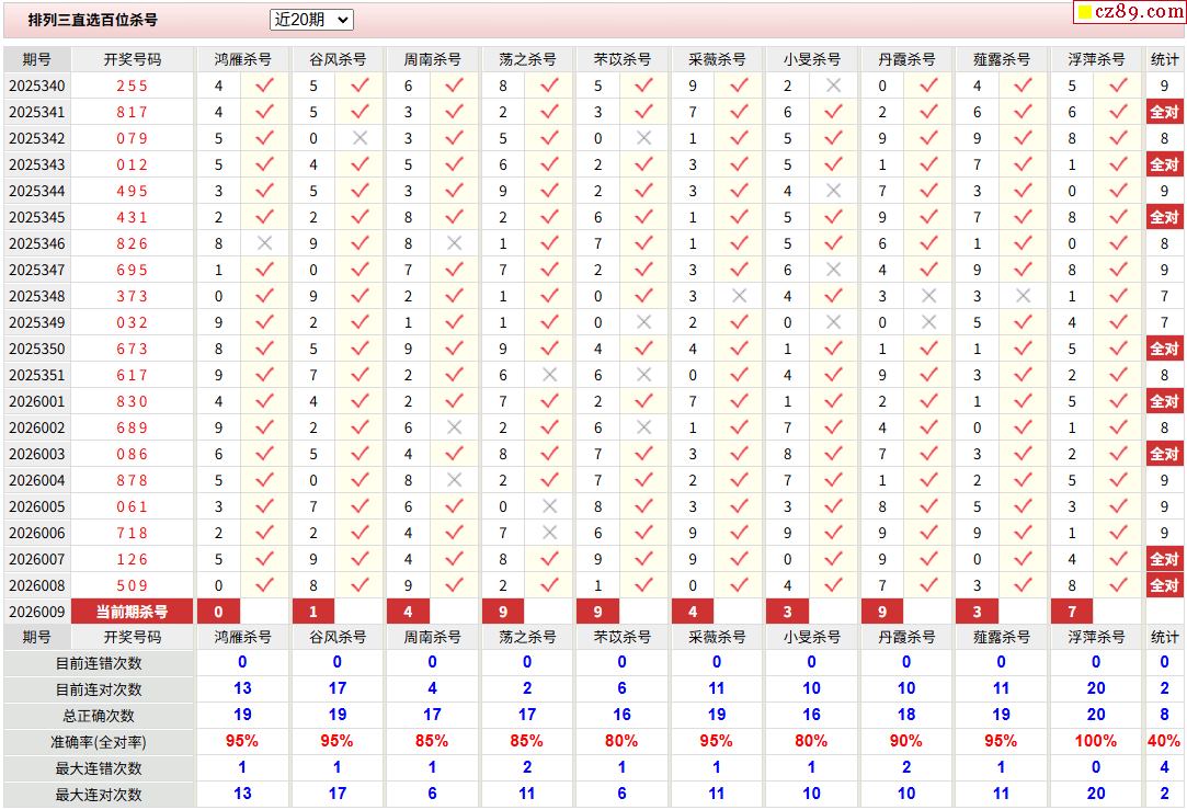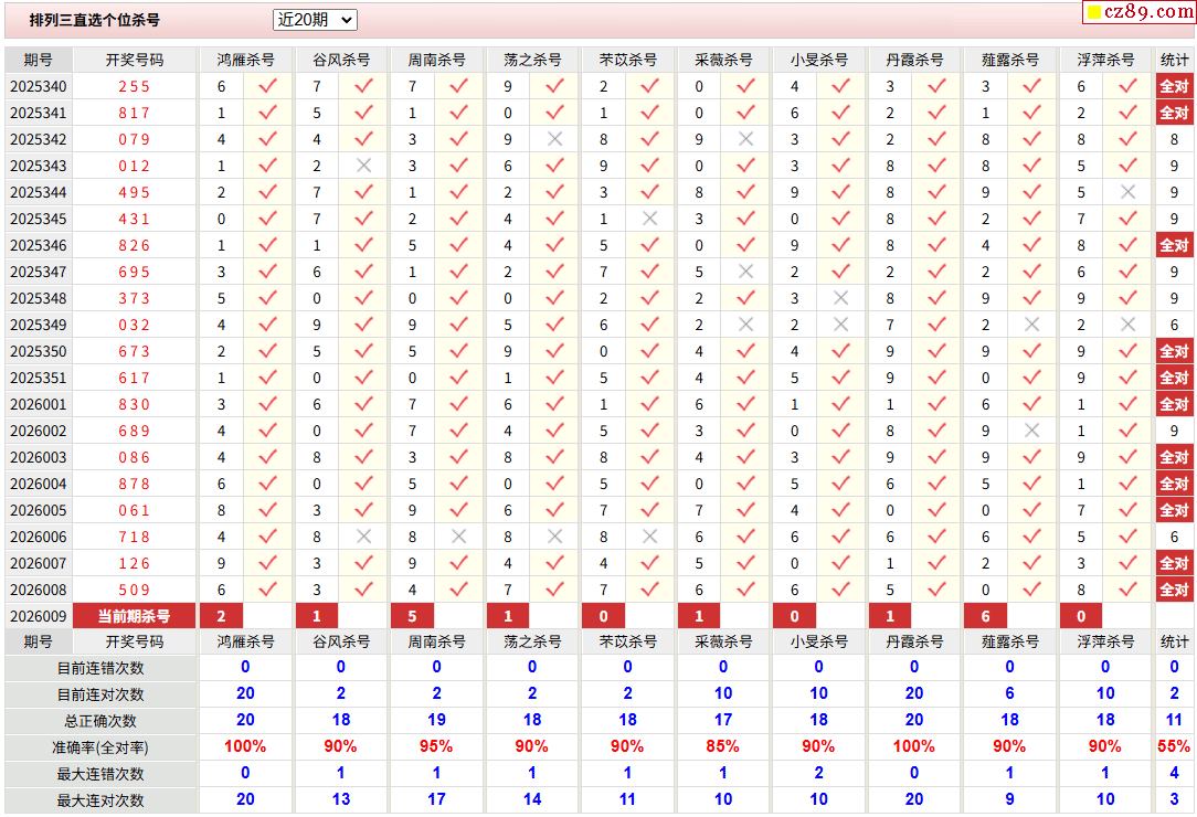 26年009期彩宝贝专家体彩P3杀号定码图表