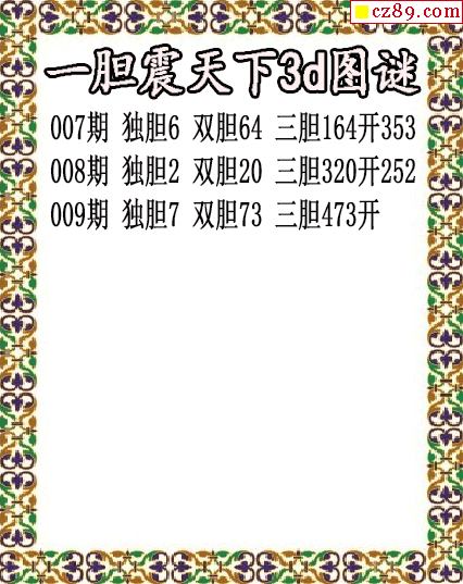 一胆震天下独胆2026009期3d图谜(原创)