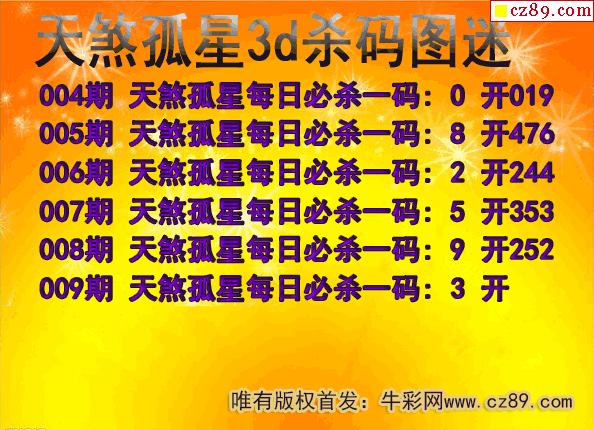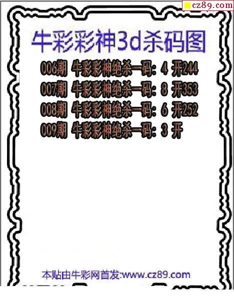 牛彩版3D预测彩报图26年009期打印版