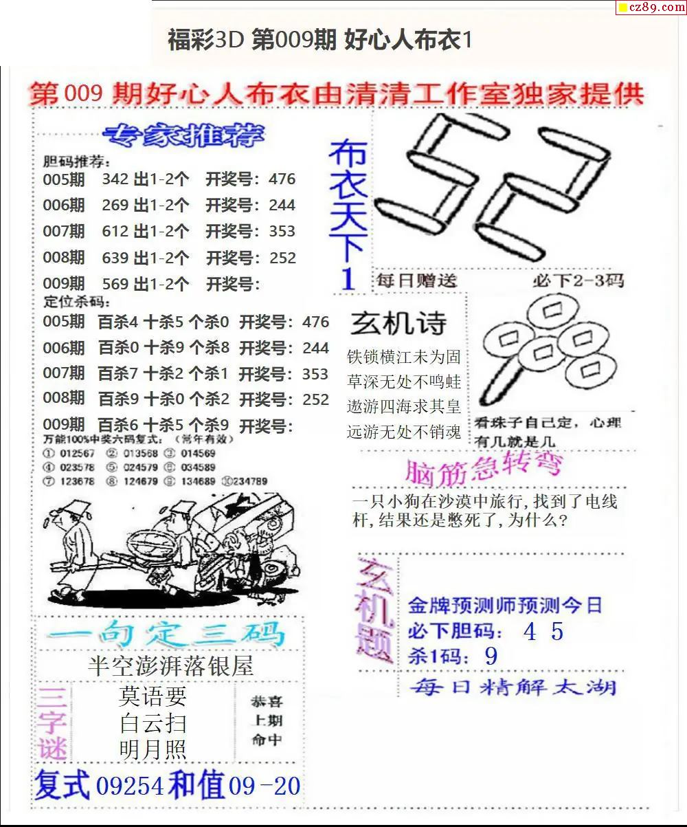 好心布衣2026009期3d图谜