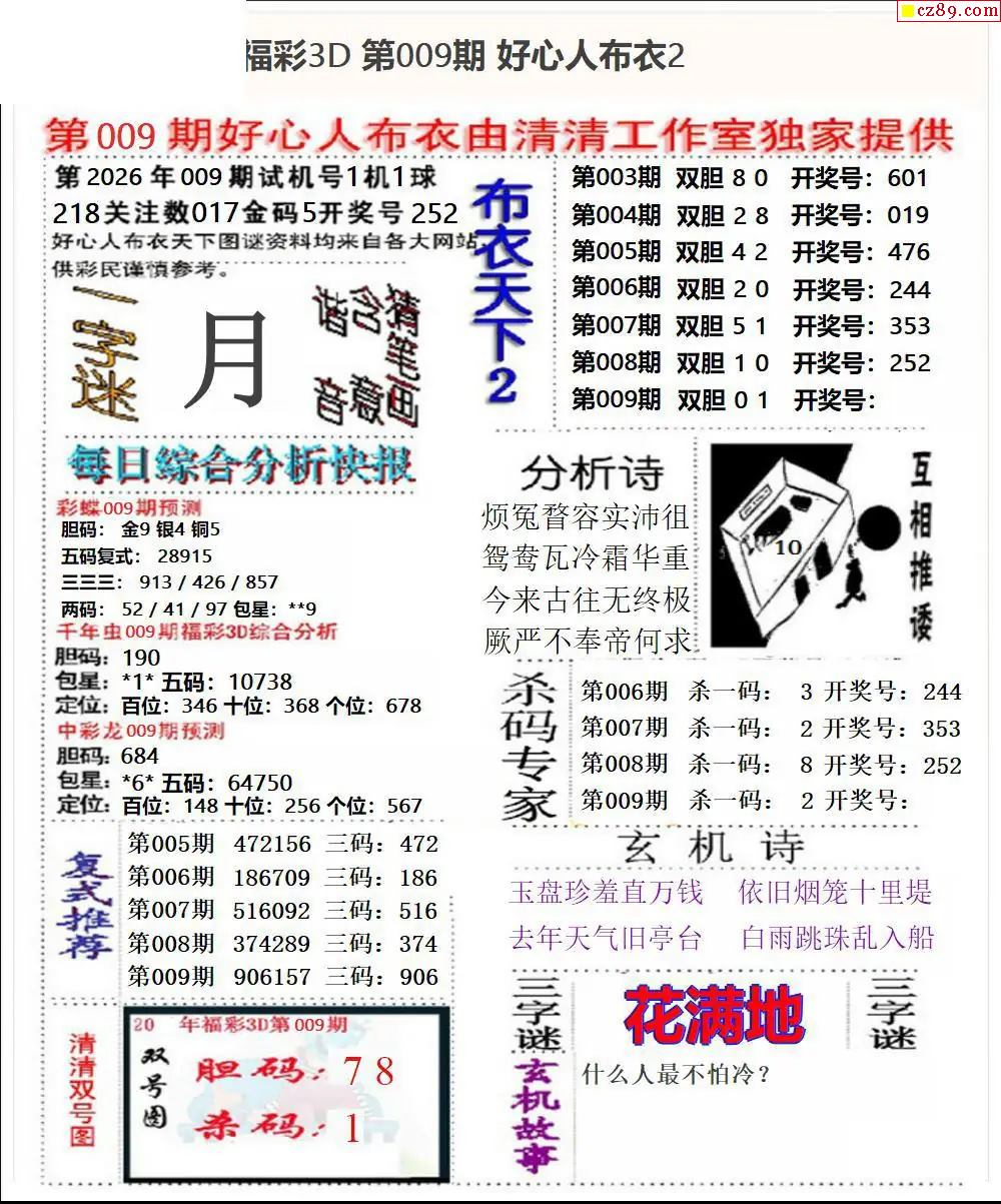 福彩3D2026009期图谜汇总