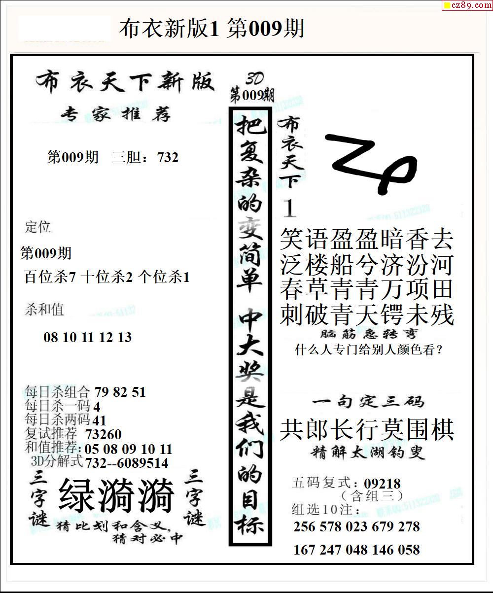 牛彩版3D字谜彩报图26年009期打印版
