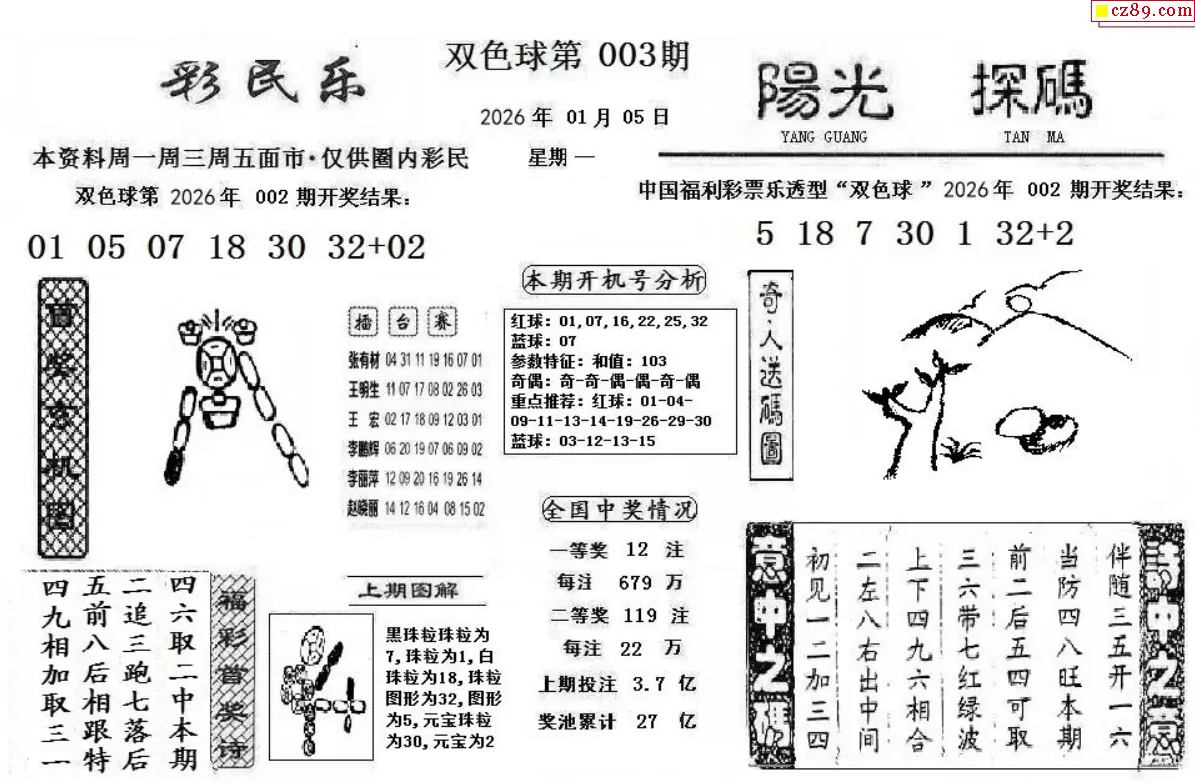 双色球2026005期 彩民乐+阳光探码图文版