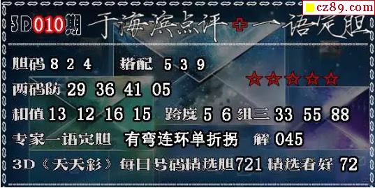 3D预测: 3D胆码预测 3D杀码预测 标签:于海滨点评 于海滨一语定胆 胆码 8 2 4 搭配 5 3 9 两码防29 36 41 05 和值13 12 16 15跨度5 6组三33 55 88 专家一语定胆 有弯连环单折拐 解045 3D 《天天彩》每日号码精选胆721 精选看好72 发布时间:2026-01-09 21:37