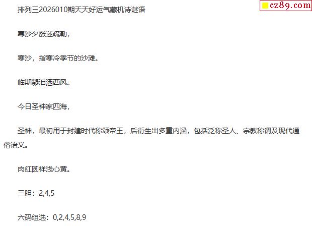 26年010期 天天好运气藏机诗谜